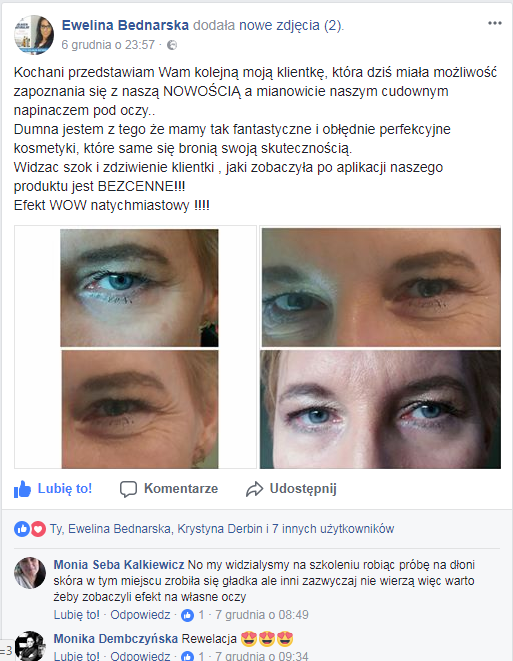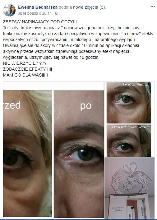 Polecam napinacz! jest dokładnie tak jak na zdjęciach. byłam na imprezie tanecznej 6h tańców. oko było cały czas wygładzone. revitalizer lepszy od eliksiru pod oczy. Polecam